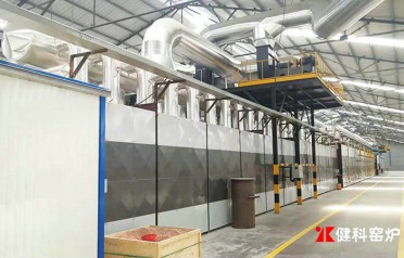 通風(fēng)設(shè)備:包括排煙系統(tǒng)、氣幕攪動系統(tǒng)和冷卻系統(tǒng)。其作用是使得窯內(nèi)氣流按一定方向流動。